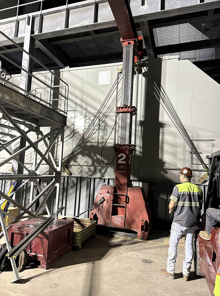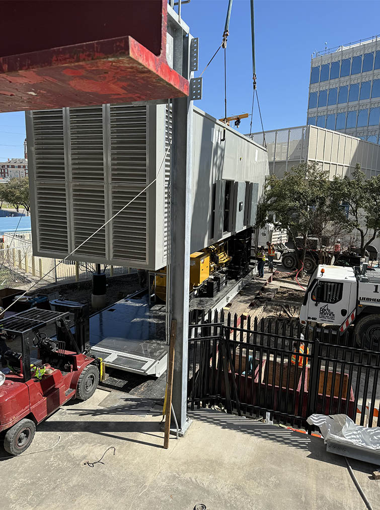 The MEI Industrial Solutions, formerly MEI Rigging & Crating team was brought on to set a generator for a complex project with the absolute minimum tolerances of working space to perform in Dallas, TX.