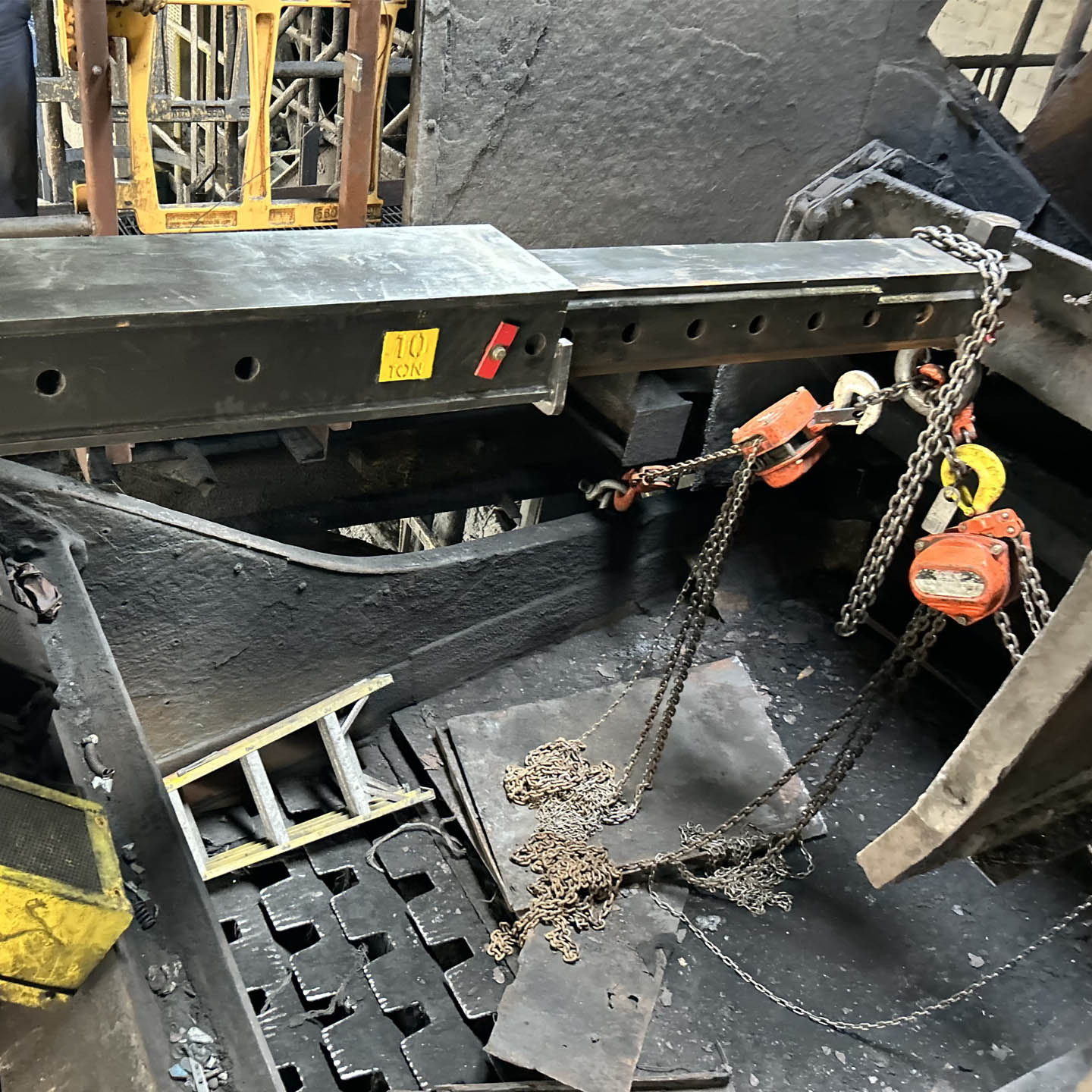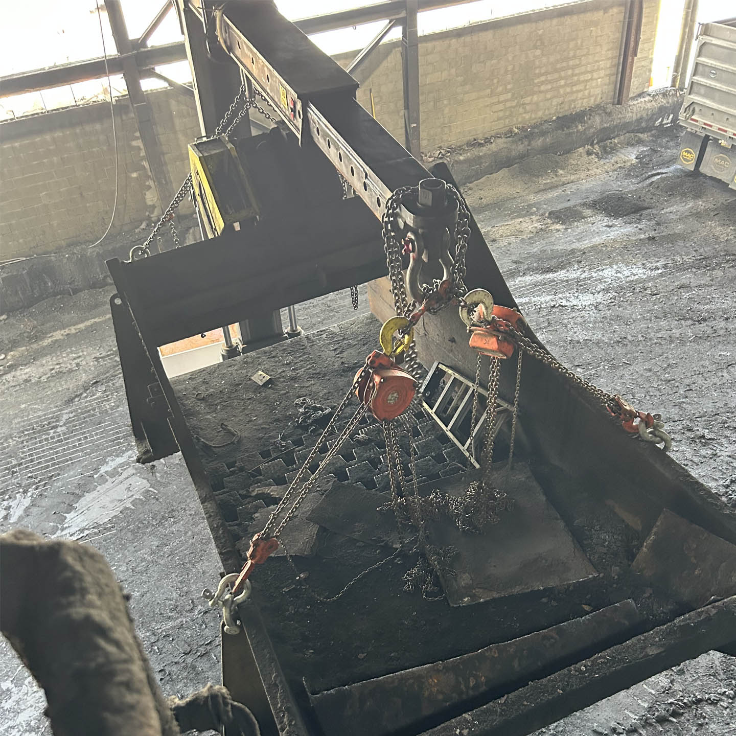 A local recycling company contracted A&A to handle the installation of a new Grizzly Conveyor and the removal of an existing model. There was a challenge, however, with limited headroom due to a beam obstructing the front of the conveyor.