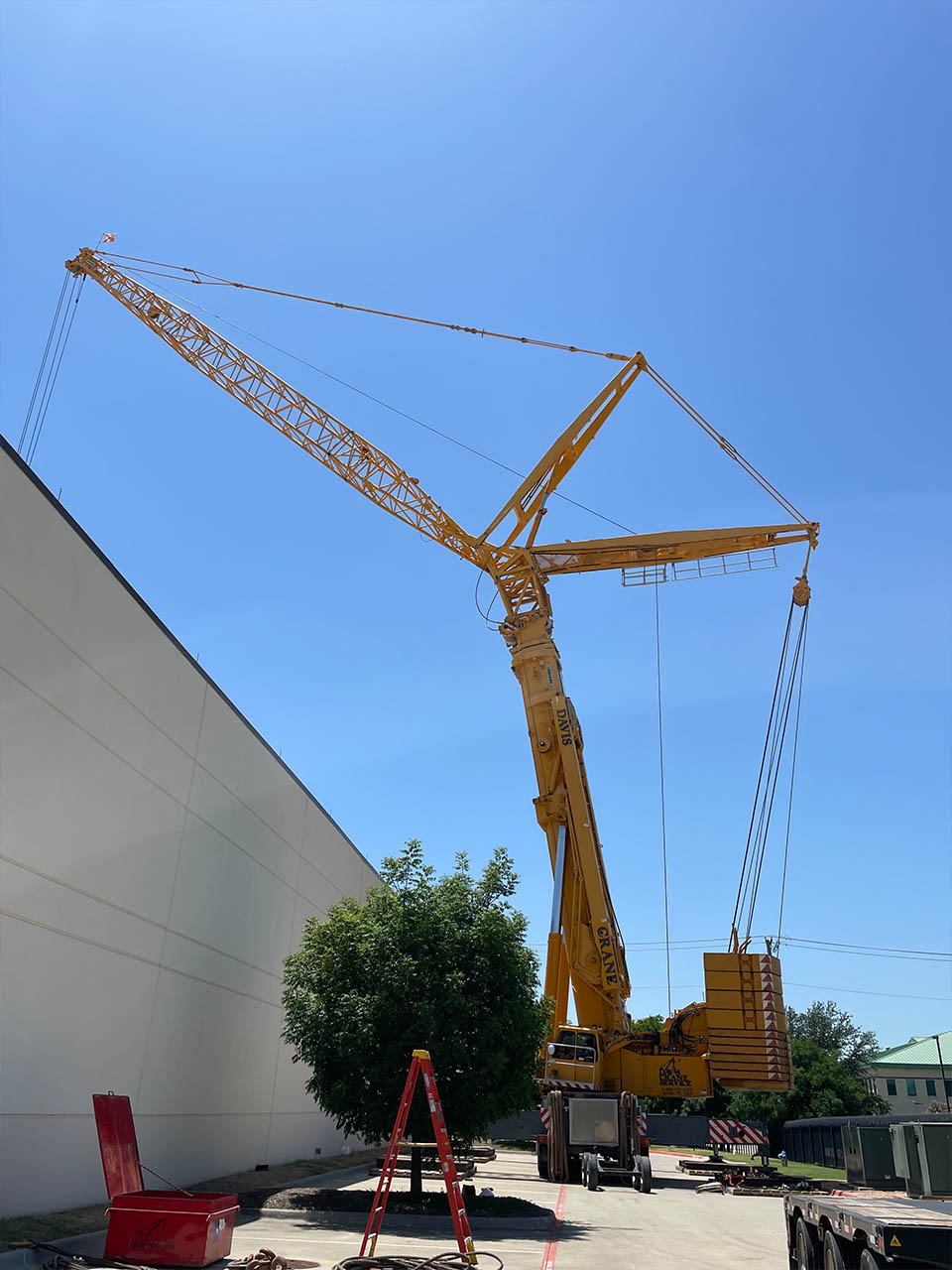 The team was brought on to provide all the manpower and equipment needed to offload and set two large generators in place. The generators estimated a total of 180,000 lbs. Due to the size and weight of the generators, road closures were needed to provide access to the site, which the Plano Police Department handled. MEI collaborated with a local crane company to provide a 600-ton hydraulic crane. The massive crane was crucial in safely lifting and placing the generators in their designated locations. The project was completed in over three days and was right on schedule. MEI has extensive experience in the mission-critical data center industry.